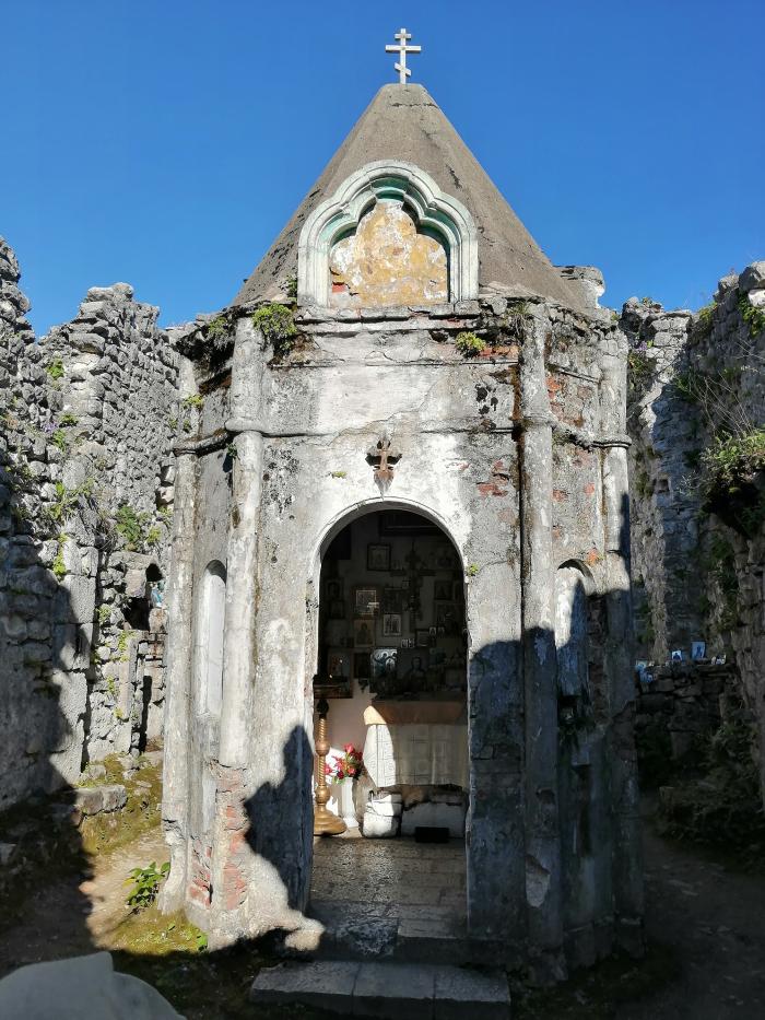 Рядом с церковью находится искусственно созданный водопад для первой в Абхазии гидроэлектростанции. Гидроэлектростанция была построена монахами Новоафонского монастыря к которому мы отправимся в другой день.