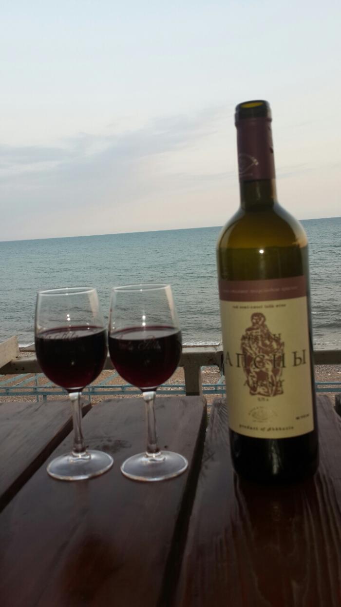 5-й и 6-й дни ни чем не отметились знаменательным. ходили на море, спали и ели. Карэн где то в горах пропадал на экскурсиях, Карина уехала на работу в Адлер (работает на мясокомбинате). Другие отдыхающие тоже занимались ничего неделанием. Короче, тушенили по полной. Я же как бывалый отдыхающий был при деле. Карэн меня назначил старшим по хозяйству. В мои обязанности входило следить за уровнем воды в баке и за электричеством. У Карэна стоит большой бак на 4 тонны из которого уже насосом вода поступает в жилые комнаты. И вот как уровень воды в баке падал на половину или больше, мне надо было включать воду и по средством шланга заполнять бак. Процедура эта длинная. Воду дают с перебоями и самое главное не прозевать момент подачи. По электричеству тоже ничего сложного. Электричество периодически вырубается. Либо работы какие то проводят, либо грозой в горах провода перебило, вот и надо было мне включать бесперебойник и стабилизатор. там система очень мудреная, я честно говоря не вникал как это все работает. просто когда пропадало электричество, мне надо было нажать две кнопки. Все эти процедуры я выполнял лежа на кровати перед телевизором. К концу 6-го дня девчонки захотели «выйти в люди». Типа в кафешку сходить. Наладить связь с внешним миром через вайфай. На гладились, напомадились, надели туфли на шпильках, я передал свой пост Карэну, вернувшемуся домой и мы пошли. Как обычно вышли на Сухумскую трассу, я поднял руку и через две минуты остановился местный джигит на кайене. Кайен конечно видавший все. рожакожа вся протертая, пластик потрескавшийся, на приборной панели горит все что может гореть, стрелки на приборах не работают, по этому я не могу сказать с какой скоростью мы ехали, но я моргнуть не успел как на пора было выходить. денег он с нас как водится не взял. пожелал отличного отдыха. про машины в абхазии это отдельная тема. сейчас опишу наши похождения в кафе и расскажу про машины. название кафе я даже не старался запоминать, название не сложное, но как то памяти оно не отложилось. приличное такое кафе, даже с замашками ресторана. на улице под навесом стоят два суровых мотоцикла, аля харлей, барная стойка с кучей разнокалиберных бутылок и бокалов под каждый вид жидкости. в уголке в котором мы пристроились стояло старое пианино, какие то ноты лежали на нем, книги местных писателей на абхазском языке, стоял даже старый проигрыватель с пластинками.не успев сделать заказ, девчонки затребовали пароль от вайфая, я же изучал меню. цены в полне демократически. вино и шампанское местного завода по магазинной цене от 220 до 250р в зависимости от названия. салатики тоже в районе 120-150 рублей, шашлык 100р за 100гр. а вот водочка совсем не дешевая. за 50гр просят от 80 до 250 рублей, в зависимости от марки. на пиво даже смотреть не стал, поднадоело уже. но не думаю что дороже 60-80р за кружку. заказали мы 600гр шашлыка на троих, по цезарю с семгой, девчонки решили угарнуть по шампусику, а я взял 250грамм водки. самую дешевую не стал брать и самую дорогую тоже, серебряный стандарт вроде бы был за 180р/50гр. наши поедания сопровождались редкими тостами, больше то сидели в телефонах, селфились ну и тд… счет у нас вышел примерно на 3.500р. в принципе не плохо. самое дорогое что было в счете это водка)))). просидели мы там часа 2, прогулялись маленько по ночному Афону. Кругом темно, редкие фона