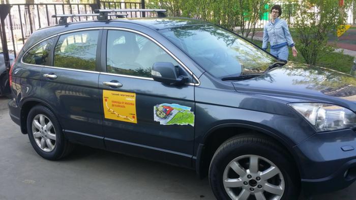 Оклеев машину наклейками дружественных автпробегу предприятий: сайта Автотуристу.Ру (рекомендую, отличный портал про автопутешествия), а также ,