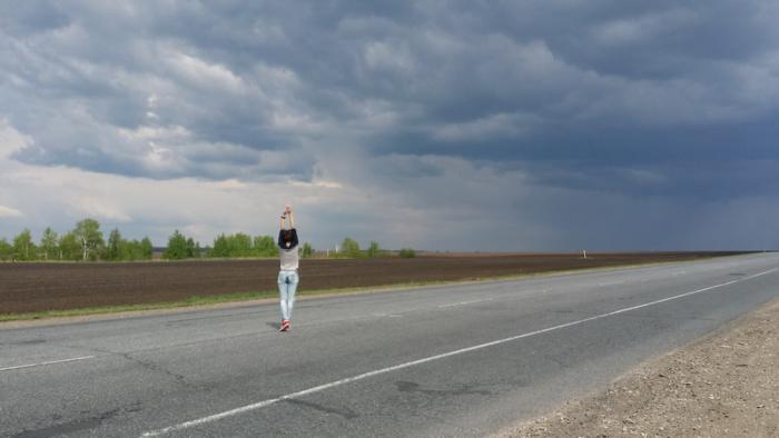 Вот на велосипеде вдоль трассы едет какой-то милый дедуля, увешанный тюками. Едет семнадцатый день из Волгограда дальше и дальше на восток (куда именно – жаль – не спросил). Останавливаем его и просим, чтобы они вместе с Таней сели на левый борт прицепа, увеличив его массу с этой стороны, дабы уберечь последний от соскальзывания справа, а сам я ещё раз пробую продёрнуть машину вперёд. Тщетно. Принимаем решение звонить в (как же рад, что запартнёрился в преддверии поездки с этой замечательной компанией). И вот, ждём техничку из Самары. Прямо сейчас-) То есть сижу пишу сие на обочине между н/п Старый Шунгут и Новый Шунгут, что в Исаклинском районе Самарской области. Дождик, кстати, снова кто-то включил, редиска. Приедет техник где-то к 13-00 (сейчас 12 с небольшим). Всего же, с учётом всех созвонов-перезвонов с РАМКом, ожидание где-то два с половиной часа. Но всё-таки это просто замечательно в нашей ситуации и куда лучше, чем пытаться – была такая идея – расцепить авто и прицеп, поставить авто под углом 45-60˚ у проезжей части (передними колёсами на асфальт) и пытаться, вновь подцепив прицеп, сдёрнуть его с места. Есть риск его дальнейшего скатывания по ещё более обильно размокшей земле вниз и кувырка. Но как-нибудь разрулим – уверен, всё у нас будет тип-топ (странно осознавать это, понимая, что данный текст читатель будет читать уже опосля всего, а для нас «это всё» — ещё пока ближайшее будущее)). Вот. А из Уфы уже звонили наши добродушные приютятели. Сказал, что уж были б у них, коли не торчалово на обочине. Ждём-с…