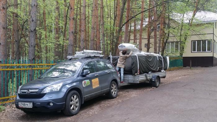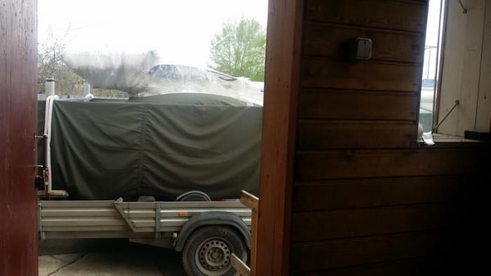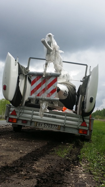 С мастером, подготовившим прицеп к дальней поездке и ожидающим от меня ещё одну часть и так немалой суммы (набежавшей в результате нескольких итераций по переоборудованию прицепа в связи с косяками, моей виной не являющимися) предстоит отдельный разговор, ну а пока… Мы с Таней бережно перемотали раны сперва малярным скотчем, потом простым, а стойки я между собой стянул такелажным ремнём (тот, что с трешёткой, обеспечивающей натяг). В ближайшее время нафиг болгаркой отпилю эту выемку, ибо коллегиальным решением с участием конструктора Сигмы Сергеем Игнатьевым было решено, что таковая фиксация хвостовой балке может привести не расчётным нагрузкам. Балка должна свободно болтаться, как это и происходит с ней в полёте. Ну а с ранением Сигмы… Где-нибудь в районе Красноярска или Иркутска м.б. кто посоветует хороший автосервис, где можно было бы загрунтовать и покрасить балку? Был бы признателен!