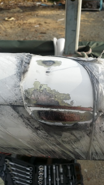 На очередном пит-стопе, посвящённому проверке креплений самолёта и сопутствующего груза, с ужасом обнаруживаю, что… Специальная наклеенная мягкая пеночка на выемке на перекладине, соединяющей поперечно две задних стойки для крепления крыльев, перетёрлась и металл трёт хвостовую балку самолёта