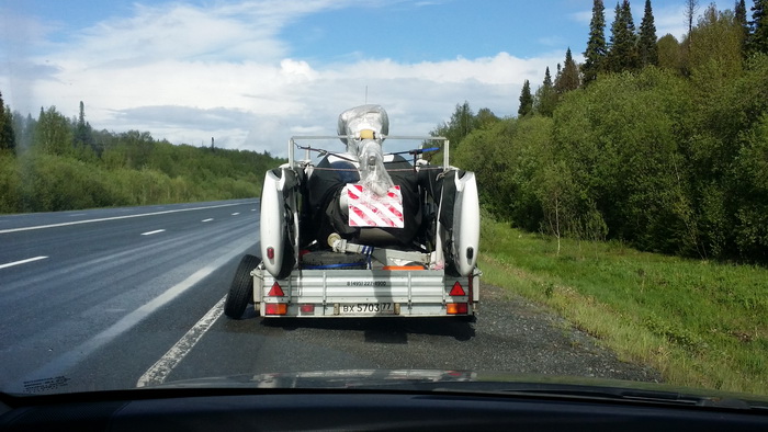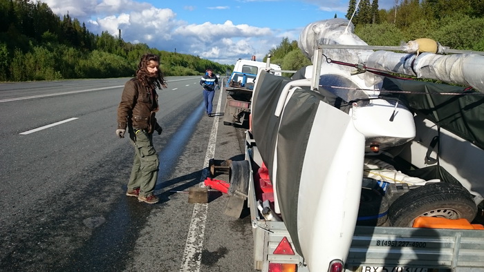 Дождь порол как из ведра, но так как качество дорожного полотно было на твердую пятерку, чесали в правом ряду под 80 км/ч, обгоняемые фурами. Иногда, когда колесо прицепа попадало в небольшую колею, наполненную водой, слышался гулкий шуршащий звук воды, бьющей по крылу. В один миг звук резко усилился, Таня только и успела спросить: «Что этот такое?», а я, кинув взгляд в левое боковое зеркало, только и видел, как левое колесо прицепа пересекло два ряда встречки и улетело в кювет. Слава богу, встречная машина сумела от него увернуться!