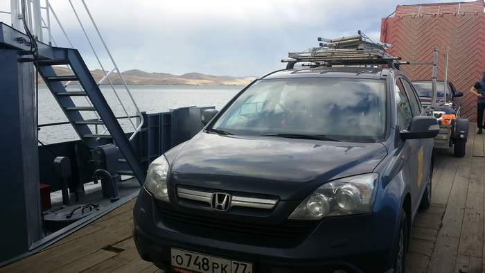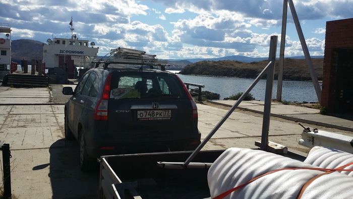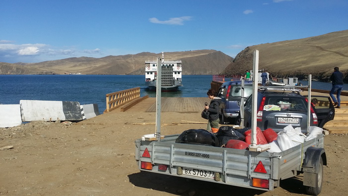Работают два парома: «Ольхонские ворота» (большой, берёт машин 20, что ли) и «Дорожник» (маленький, берёт машин 8). Ходят каждые полчаса с 6 утра и до 00 ночи. В сезон очереди на паромы такие, что были и перестрелки, и сталкивали в воду машину, пытавшуюся пролезть без очереди, и ночевали люди, не успевшие уехать на последнем пароме… В следующем году запустят новый паром, на 30% более вместительный, чем «Ольхонские ворота», а мелкого снимут, но это в следующем, а пока, в сезон, по прежнему вакханалия! Мы же заезжали ещё до начала активного туристического сезона, поэтому очереди практически не было.
