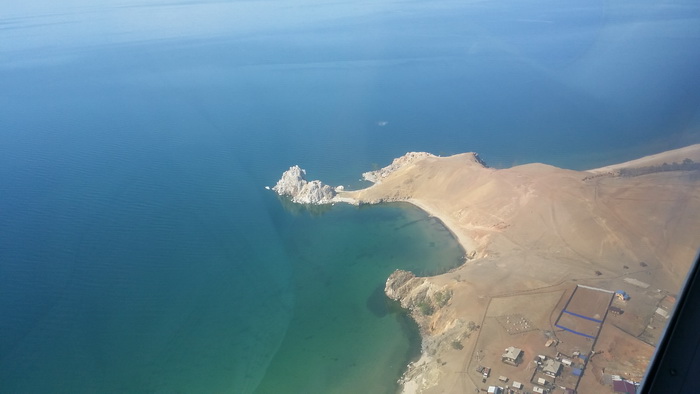 Мдэ… Если бы не Богдан, худо бы мне было! Летели над сопками, погода – обложные дожди (начались уже на полпути до Ольхона, хотя в районе Оёка всё было чисто). Но для Богдана все пугающие мой взгляд ландшафты под нами (то горы вздымались прямо у нас на пути, то сильный дождевой заряд обойти по краешку нужно) были привычны. «Здесь вот через этот распад пойдём», — командовал он, — «А тут набери 1 600 по истинному давлению»… В общем, порядка 1 часа 40 минут и мы – на месте. Ещё только завидев Байкал на горизонте, над которым вовсю сияло солнце, душа уже начала рваться из груди!