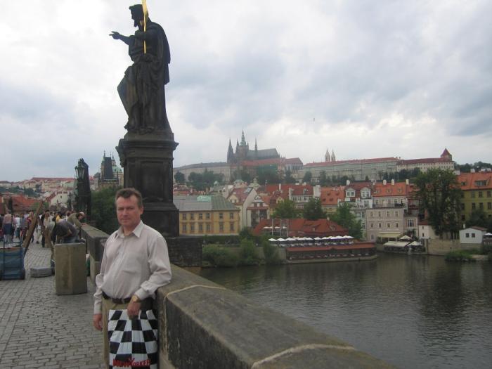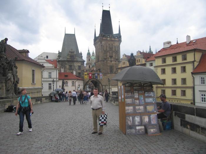 В это время небо заволокли тучи, и пошел дождь. Мы подумали, что это нам знак – возвратиться в гостиницу и отдохнуть, заодно и основательно пообедать. Тем более, что мы еще хотели посмотреть Карлов Мост и прокатиться по реке Втлава. Дождь, к нашему счастью, быстро закончился и мы, отдохнувшие и подкрепившиеся, вернулись в старый город и пошли гулять и смотреть Карлов мост, старейший, знаменитейший и красивейший в Праге.