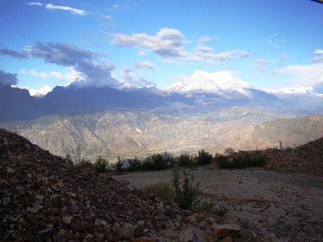 Нам сегодня нужно добраться до Пан Американы и отправить Влада домой в Лиму на работу. Вариантов несколько. По крайней мере, по карте. Выехали в 11-30. Всё утро собирались, купались в бассейнах, доедали вчерашний сыр и вареную картошку. От HUARAZa едем на север. Асфальт с ямами. Машины, как зайцы скачут по всей дороге. Вид – нереальный. Сильно напоминает Непал. Справа гряда снежных гор.