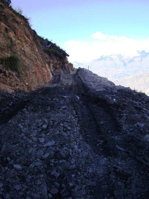 Последние 10 км на дороге ни одного следа машин. Последние следы были на угледобывающей шахте, если это сооружение можно назвать шахтой. Просто в норах руками копают уголь и спускают по вертикальной стене по трубам к дороге.