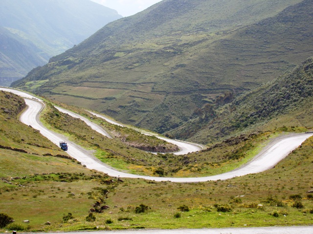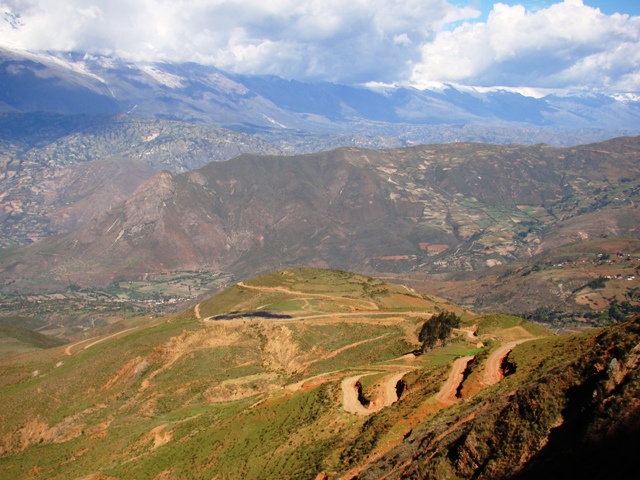 Выезд из города – разбитая дорога с грязью. Карабкаемся в гору среди домиков. Потом выезжаем на отличный асфальт и 15 км серпантинов наблюдаем виды на HUARAZ с разной высоты.