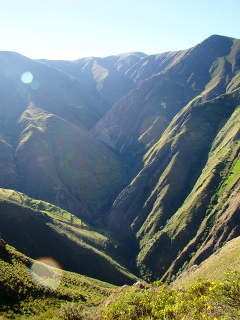 На выезде из города обгоняю на горбатом мосту еле едущий древний грузовик, гружёный кукурузой. Конечно, переезжаю красиво нарисованую двойную сплошную. Тут же с поста выбегает полицейский, тормозит и ведёт в кабинет к майору. Кабинет огромный. Большой стол. Солидный начальник. Выясняет подробности, но жмёт руку и отпускает. Красавчики. Ещё подряд 2 поста на Лэнд Круизерах тормозят, но я в 10 словах с улыбкой рассказываю про Дель Мундо (вокруг света), дарю наклейки и едем дальше. Едем по зелёной долине. Серпантин.