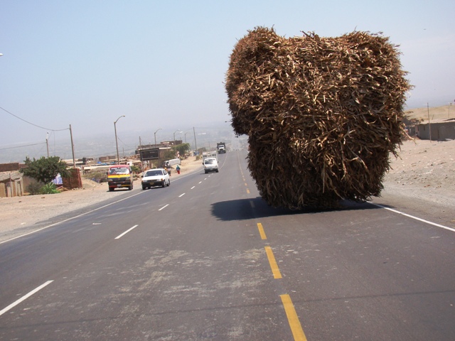 Иногда попадаем в пробку, но народ весь радостно машет и очищает нам дорогу от тракторов и грузовиков. Пару раз перед нами падали на дорогу булыжники, но это – ерунда. Последние 40 км – это уже свежий асфальт. Зелёные долины закончились. Началась каменная пустыня с лысыми, без растений, горами. Заезжаем в CASMA. Автобусы до Лимы только дешёвые – без удобств. Промышленный городок. Выезжаем в сторону CHIMBOTE. 60 км по Пан Американе. Опять частые полицейские участки. На каждом втором тормозят. Некоторые с улыбкой сразу отпускают. Один суровый долго смотрел права и техпаспорт, сверяя номер машины. Проехали свёрток на красивую бухту. На свёртке – огромная черепаха из бетона. Парк наверное.