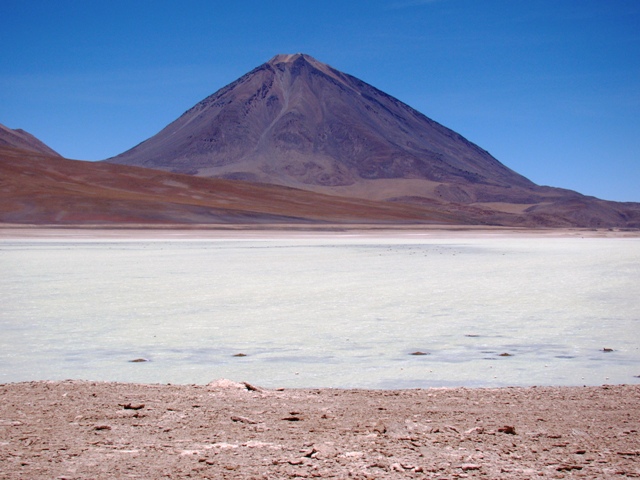 Через месяц всё озеро зальёт дождями. Озеро огромное – 12000 кв. километров. Глубина соли 180 метров. Здесь её – 10 миллиардов тонн. По озеру скорость 100 – 120. Заблудиться нельзя, хоть и есть многочисленные отворотки. В принципе можно съехать с трассы в любом месте. Но нельзя выехать на берег – болото. Выезд на берег в CACHANI (S20o18.096, W66o56.068).