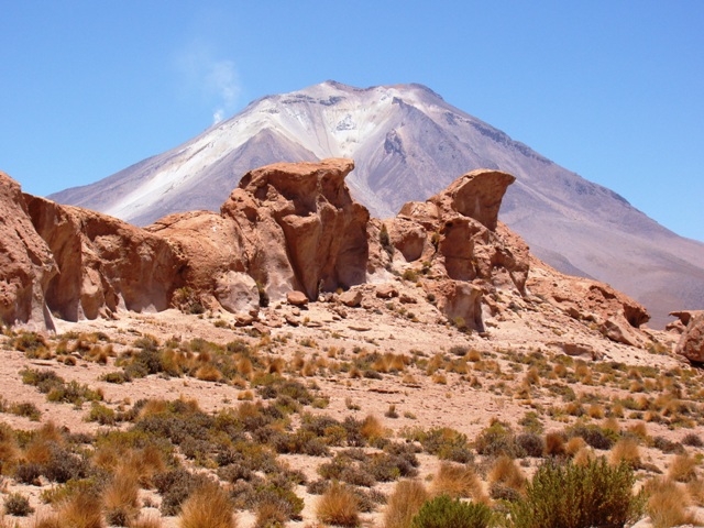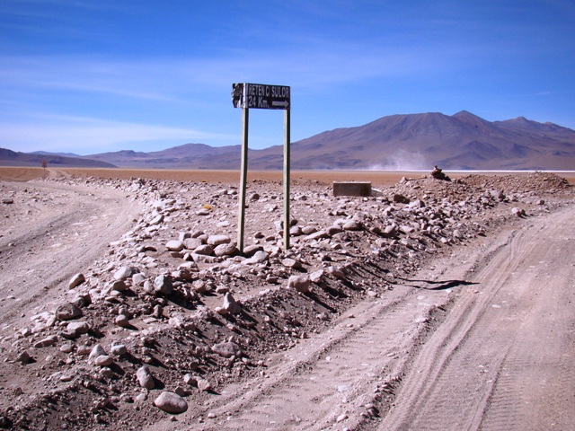 Дорога совсем паршивая. То песок довольно глубокий. То камни. То гребёнка. 20 км в час. Дорога одна – идёт на север в 10 – 20 км от чилийской границы. Через 19 км Каменный Цветок. Если бы не велосипидисты из Канады, мы бы наверное и не признали одну из