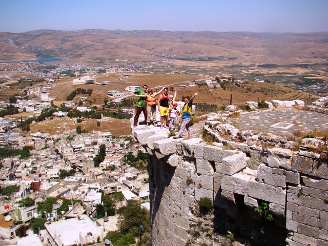 Симпатичный. Опять меню нет. Цен не говорят. Надеемся на остатки честности. Не удаётся. Уроды. За 2 люляшки, 2 курицы, 2 салата, 2 хомуса, 2 мутабаля и 7 чаёв — выставляют 2900 сирийских — это 70 долларов. Дохрена. Пытаюсь торговаться, но когда всё съели — позновато. Нет — такого уродства больше точно не припомню нигде на планете. Заехали по дороге в цитадель. Вид на море с горы симпатичный. 4 трубы ТЭЦ красиво вписываются в пейзаж. Правда какой то выходной и всё закрыто. Прорываемся к Крак Де Шевалье. Карт нет. Те, что давал Олег — закончились. Остались только карты мира Новитела. Там только основные дороги. Крак находится на 40 — 50 км на трассе Таруса — Хомс. Оранжевые указатели показывают направо, потом тунель под трассой и потом 12 км по серпантину в гору. Крак как и 3 года назад. Только закрылся ресторан короля. Цена за вход висит 150 фунтов с иностранца. Я доказал боссу, что моя семья — наполовину сирийская и он выдал нам билеты на 7 человек за 680 фунтов.