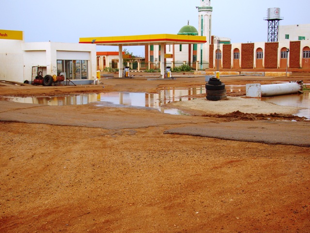 Англичане искали отель с кондиционером, но оказалось, что мест на всех нет. Мы ознакомились с городком, космическими ценами на фрукты (апельсины — 90 руб. кг, а других фруктов — нет) и решили двигаться в сторону Хартума, так как было всего 15.30. Попрощались с англичанами. До Хартума около 450 км. В начале отличная дорога идет вдоль Нила, а потом сворачивает на право и идет на прямую через пустыню. Перед въездом в пустыню заправили полный бак, купили хлеба и посчитав, что будем на месте около 21.00 — двинулись в пустыню. На выезде у нас проверили паспорта с визами. Через 50 км мы увидели первые лужи вдоль дороги, сильно удивившие нас. По солнцу в дымке и красным облакам мы пытались угадать — будет ли песчаная буря?