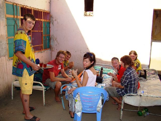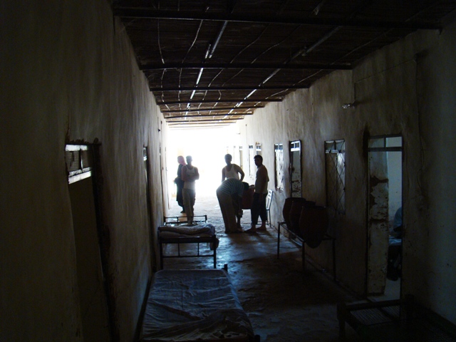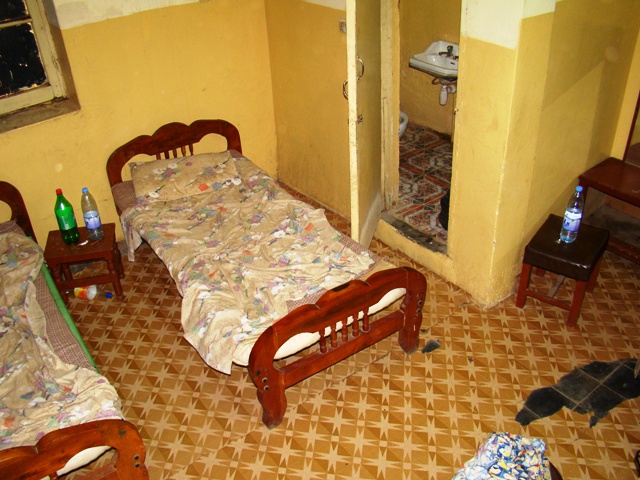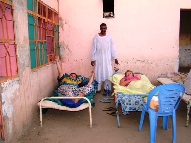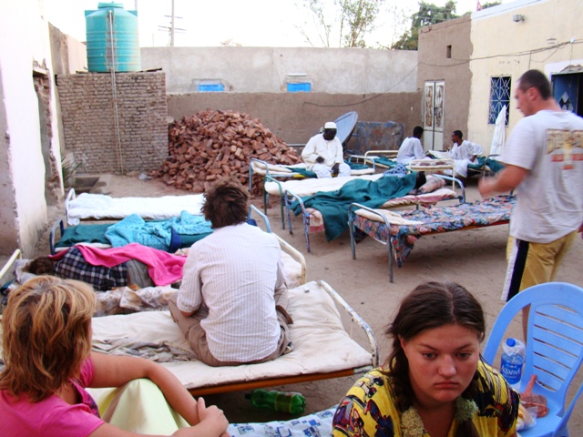 Ситуация не сильно жизнерадостная… Стемнело… Буря продолжалась… Когда до столицы осталось около 100 км мы выехали из пыльного облака и начало немного светлеть. В Хартуме у нас было отмечена 2 кемпинга — один в центре, а другой на выезде из города в сторону Эфиопии. К 22 часам мы нашли центральный кемпинг. Там даже стоял очередной английский Ленд Ровер со спящими на крыше очередными «самостоятельными английскими путешественниками». Но подсказками местных жителей мы еще пол часа искали бюджетный отель. Случайно зайдя в подъезд под светящей арабской вывеской, мы обнаружили старый госпиталь — общежитие. Нам выделили две комнаты с несильно чистыми душами и туалетом всего за 120 фунтов (45 долларов).