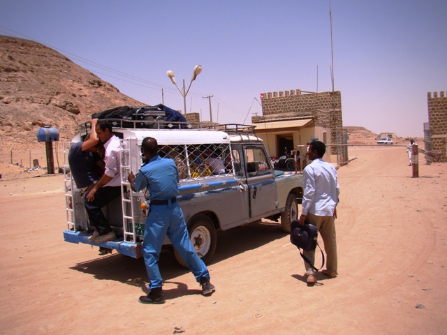 Раз в неделю уходит поезд в Хартум (идет двое суток), автобус — раз в неделю и раз в неделю — паром в Египет. Тогда начинается жизнь. Деньги начинают менять ещё на пароме и в ресторане 1 класса. Курс — 2,5 с фунтов за доллар. На выходе 2.55. В городе предлагают 2.6, но легко ломаются на 2.65. Местными деньгами выгоднее платить и за регистрацию — 123 фунта с человека, правда народ говорил, что без посредника это стоит 103 фунта. Но мы не заморачивались и отдали всё чёрту — Магди Бошара. Тел. 0121730885, но он вас сам найдёт.