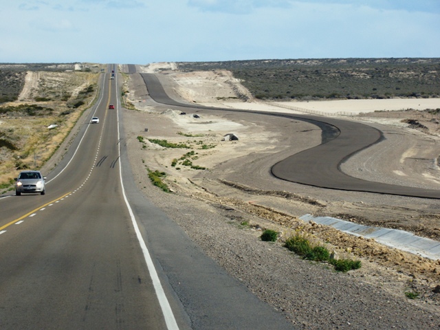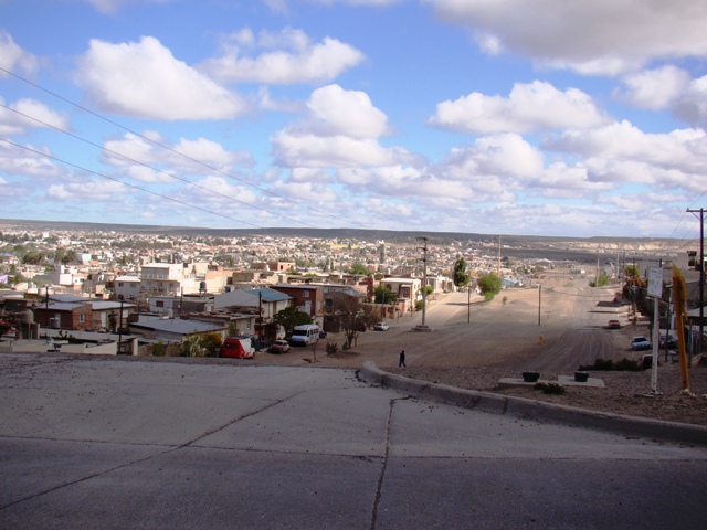Вначале кустарник и равнина. Несколько холмов. Несколько заправок. По дороге один городишко. COMODORO RIVADAVIA. Плутанули. Поездили по щебёночным улицам. Карта GPS начала ошибаться. Едем вдоль нарисованной дороги. Дорога идёт по берегу. Обрыв небольшой. Большая каменистая полоса прибоя. Потом пошли пригорки. Кустарник сменился на какие-то кочки, покрытие чем-то типа мха. Появились животные. Табуны лам. Перепрыгивают ограждения и переходят дорогу. Стаи страусов. Не так часто, как в Африке, но встречаются. Так кА по сотне километров нет никакого жилья, то, наверное, всё-таки это — дикие животные. Задавленные кролики. Машин совсем мало. Один раз ехали около часа и ни одной встречной машины. Мы одни во всей степи-пустыне. Добрались до нашей сегодняшней цели – SAN JULIAN. Заехали в город уже в 19-20. Город – странный для Южной Америки. Огромная центральная улица к морю. Вдоль неё магазины, несколько отелей. Упирается эта улица в пролив океана. В конце улицы на берегу – деревянная шхуна с парусами и матросами. От открытого океана побережье отделяет безлюдный остров. Ветер дикий. Круглые сутки. Похоже здесь не смогли бы расти никакие фрукты – их бы сдувало.