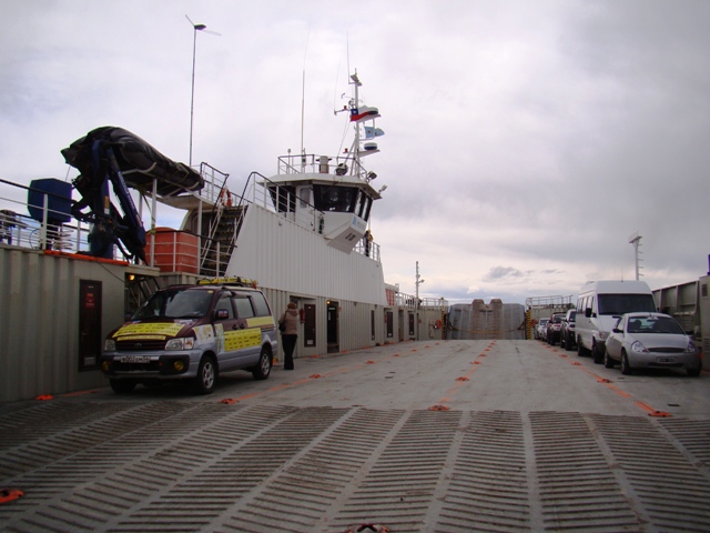 Ещё дома пытался для себя прояснить ситуацию с возможностью самостоятельного проезда до Ушуайи. Никакой инфы не нашёл. Теперь разобрался – объясняю. Чтобы русскому человеку съездить своим ходом на Огненную Землю нужно: Двухкратная виза Чили (ждём отмены визы Чили для россиян). Потом от RIO GALLEGOS по Руте (трассе) № 3 едете на юг. Парома всего два. Один идёт в самом узком месте Магеланова пролива в восточной его части. Туда от границы отличная асфальтовая дорога. Идёт он часто. Нам как всегда волшебно повезло. С ходу – не притормаживая, мы влетаем на стоящий паром. Ровно через минуту паром отчаливает. На пароме всего с десяток машин.