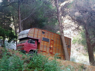 Только на следующий день мне дали первую серьезную наводку. Бармен в одном из кафе Рондо сузил круг моего поиска, нарисовал на салфетке схему. Было прикольно играть в сыщика.:) Искал бы я еще очень долго, но помог мне случай. Встретил человека, который шел в лагерь хиппи, это было сразу заметно по его внешнему виду. На серпантине в районе деревни Orgiva есть неприметный поворот, который ведет в нужное ущелье. Поворот никак не обозначен и я уже несколько раз проезжал мимо. Да и дорога в ущелье была мало похожа на дорогу.