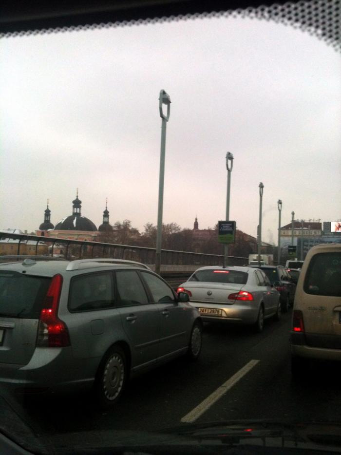 В столицу Чешской республики мы попали в основном через автобан Братислава-Брно-Прага и почти сразу встали в пробку (поехали напрямую через центр). Удивительно было созерцать как поток из трех полос чинно движется ровно 50 км/ч… Везде камеры и фотофиксаторы.