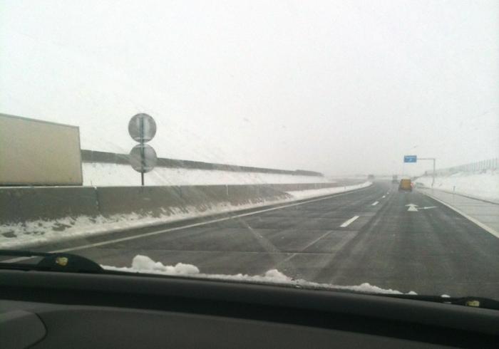 Начал валить снег, но дорога не скользкая и снег на ней не лежит, хотя температура за бортом -2-4, и мы двигаемся с максимально разрешенной скоростью местами достигающей 140 км/ч. Основной поток ползет сотню, ни кто не мешает и поворота на Закопане достигаем за 20 минут.