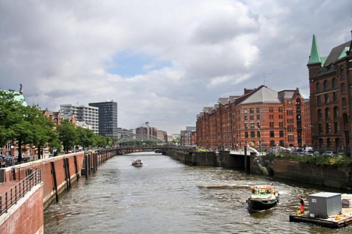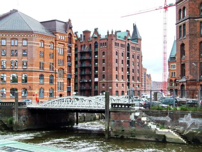 Постепенно мы вышли из старого города, напротив которого увидели ещё одно из интересных мест Гамбурга — старые складские помещения из красного кирпича. Этот город пакгаузов является самым большим в мире складским комплексом.