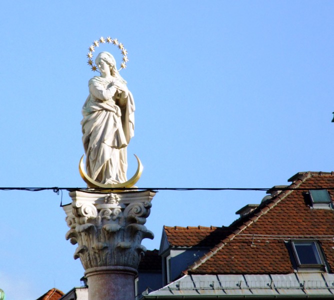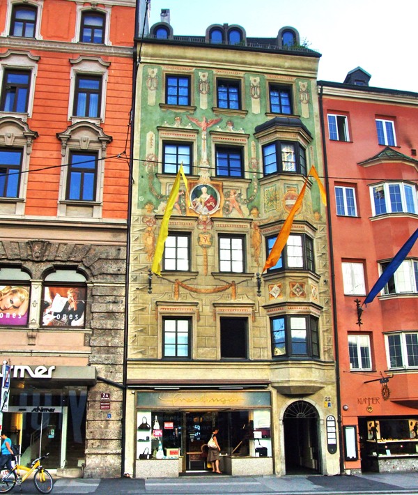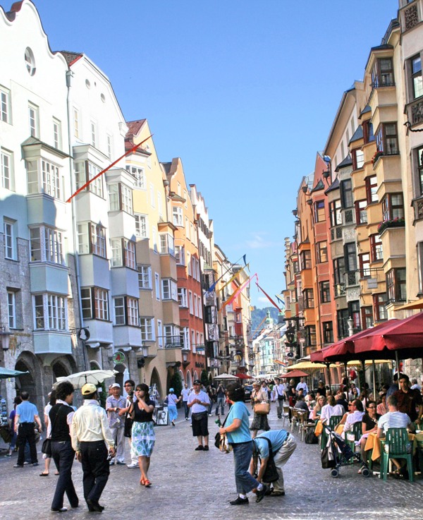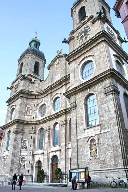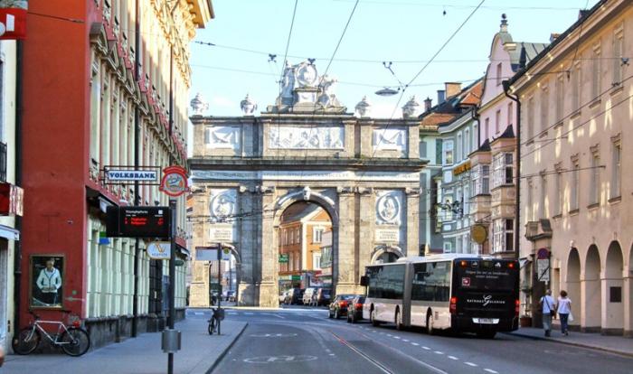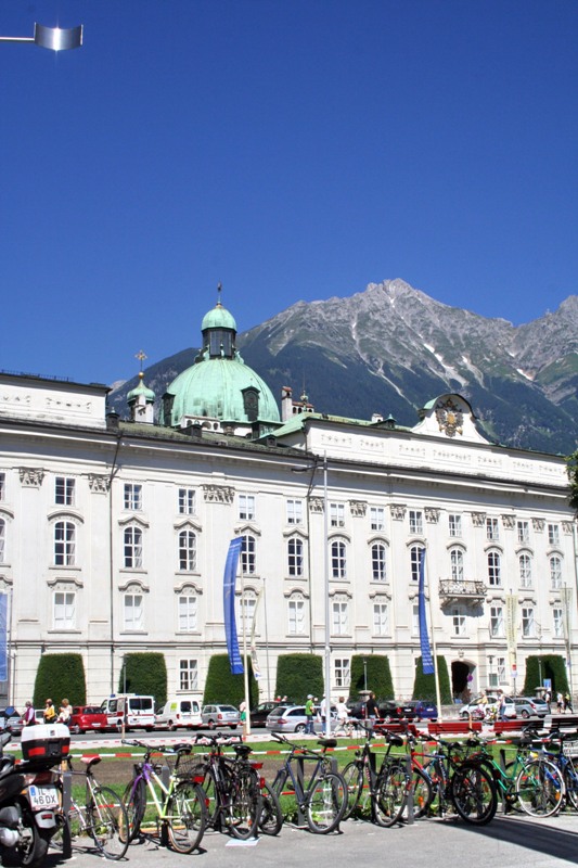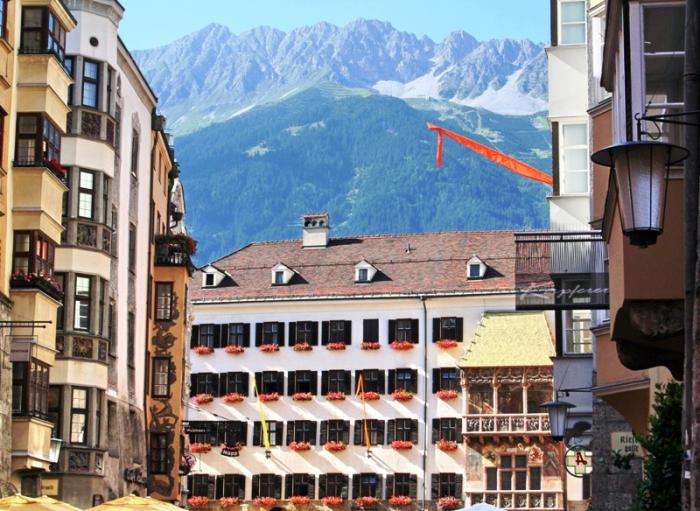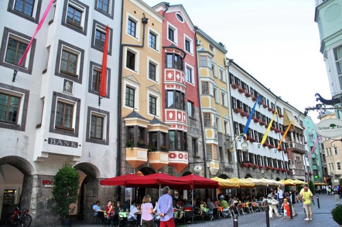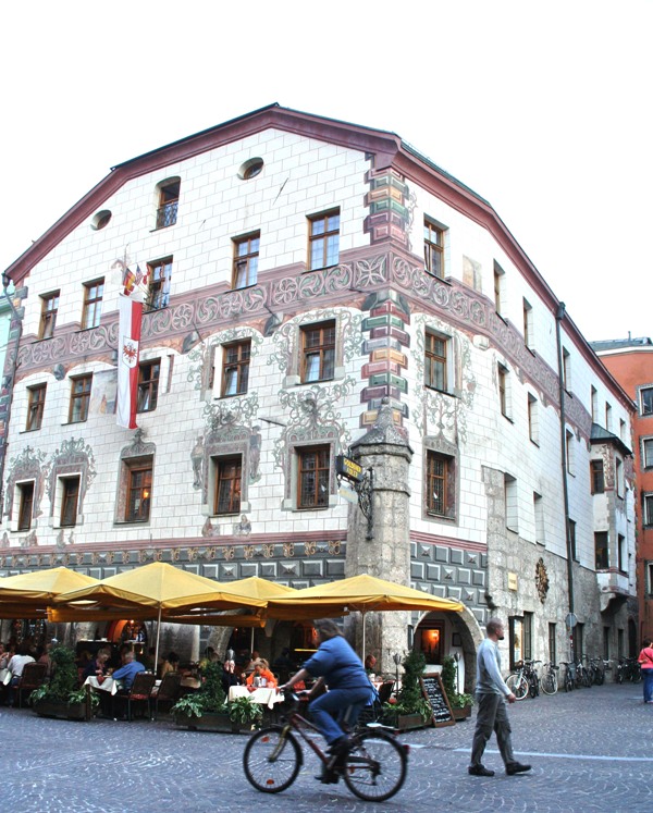 Отрицательные эмоции стёрлись, как только состоялось знакомство со старым городом – мы окунулись в мир поздней готики, ренессанса, барокко и рококо. Свою экскурсию мы начали с главного символа города – золотой крыши, которая считается самым красивым балконом Европы. Само здание было построено при Фридрихе IV в начале XV века и служило резиденцией Габсбургов. А в конце XV века по приказанию Максимилиана I (императора «Священной Римской империи») к зданию был пристроен эркер для наблюдения турниров, крышу которого украшают 2657 медных позолоченных листов.