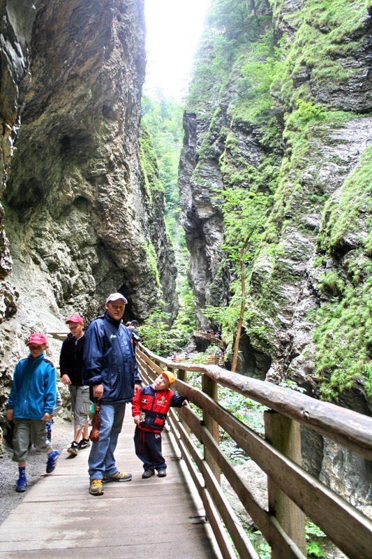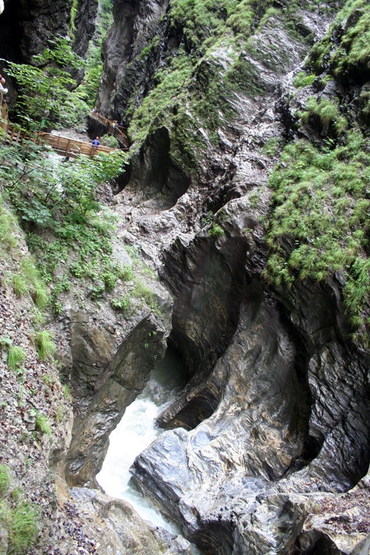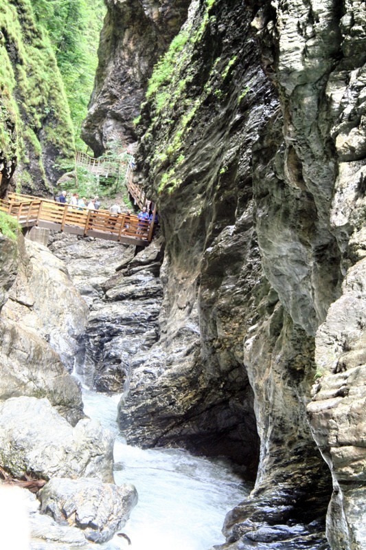 Немного информации из справочника: это ущелье одно из самых длинных и самых глубоких альпийских ущелий, доступных для посещения. В 1876 году на скалах укрепили деревянные карнизы для пешеходов. Монтаж карнизов оплатили князья Лихтенштейн (отсюда название). Через переднее ущелье Vordere Klamm путь приведёт к котлу Klammkessel, окружённому отвесными (300м) скалами, и далее к заднему ущелью Hintere Klamm, которое заканчивается шумным водопадом (высота падения 60м).