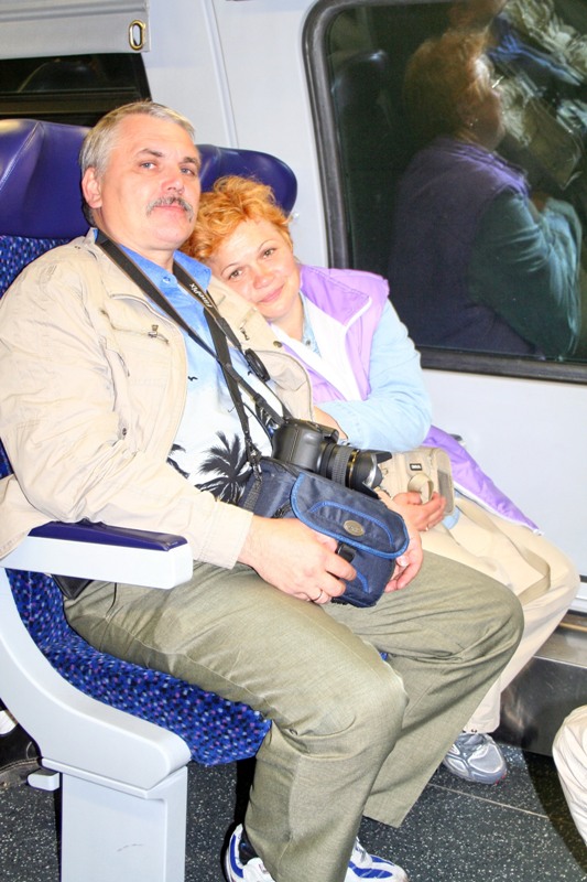 Ровно через пол часа, тихонечко из-за гор «выплывает» паром – небольшой электропоезд, к которому прицеплены платформы для автомобилей. Затем спокойно, «без шума и пыли», повинуясь дирижёру, машины были погружены на платформы, а все пассажиры препровождены в комфортабельный поезд, где мы от души, но тихонечко, посмеялись над собой.