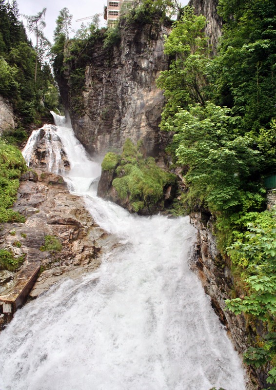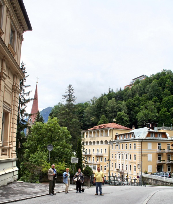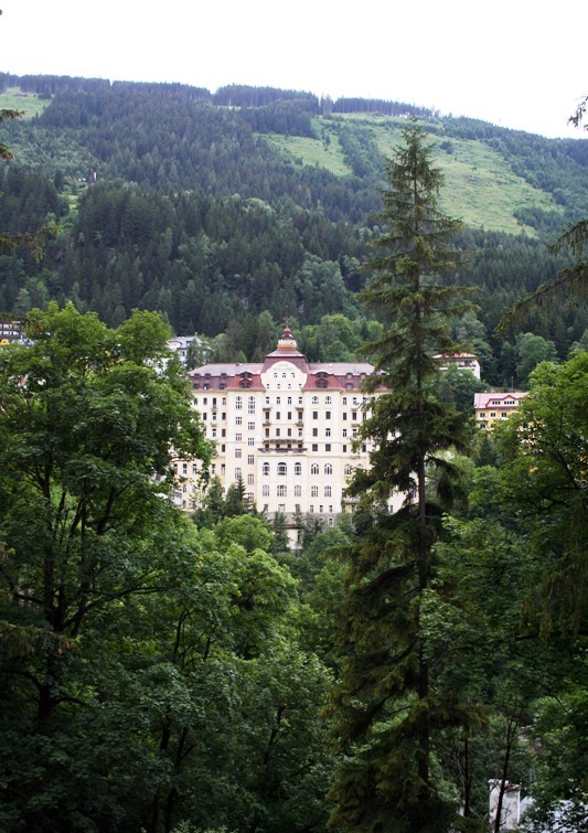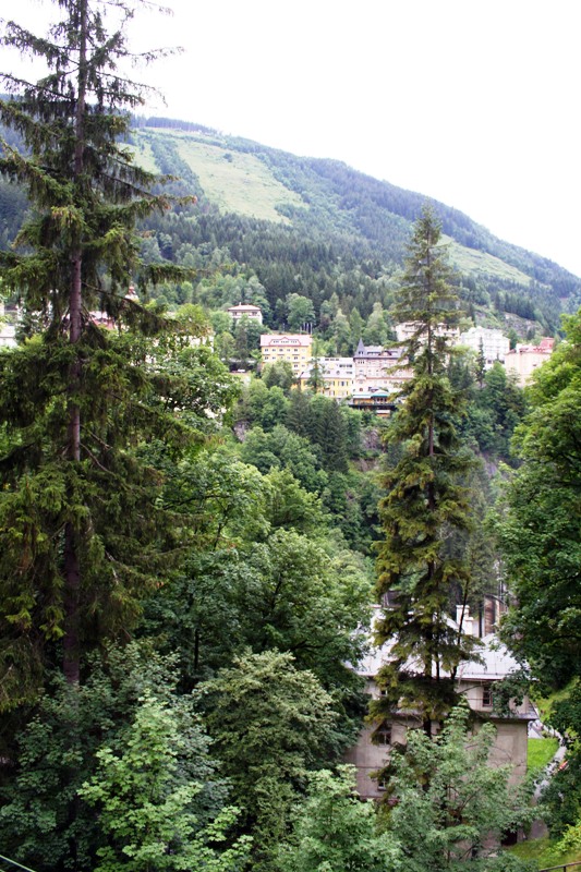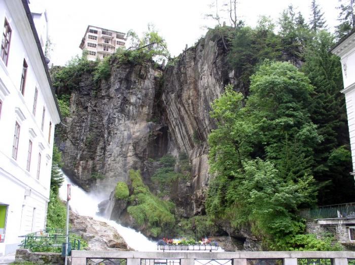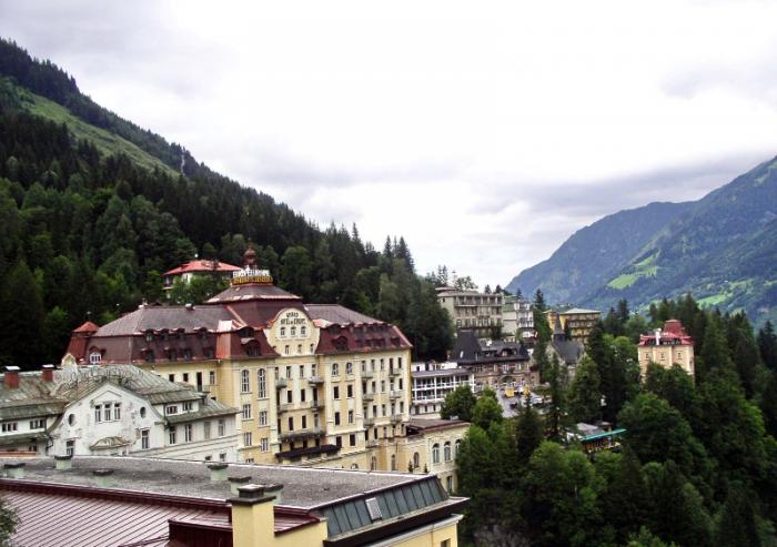 Краткая информация из путеводителя: Бад-Гаштайн расположен в узком горном ущелье на северном склоне Австрийских Альп и разделён на две части водопадом. Семнадцать термальных источников дают миллионы литров минеральной воды. Источники бьют прямо из-под земли. Эту воду накачивают в бани, расположенные по всему курорту. На воды в Бад-Гаштайн приезжали ещё в середине XIV века, но настоящее процветание этого города началось в 1793г., когда принц-архиепископ Зальцбурга построил здесь дворец. Во второй половине XIX века Бад-Гаштайн считался одним из самых знаменитых курортов Европы. В этом городе сочиняли музыку Иоганн Штраус и Франц Шуберт. Немало важных дипломатических документов было подписано здесь, между стаканчиком минеральной воды, прогулками по променаду Кайзера Вильгельма и вечерами в казино гранд — отеля «Европа».