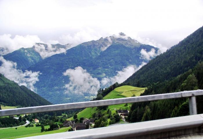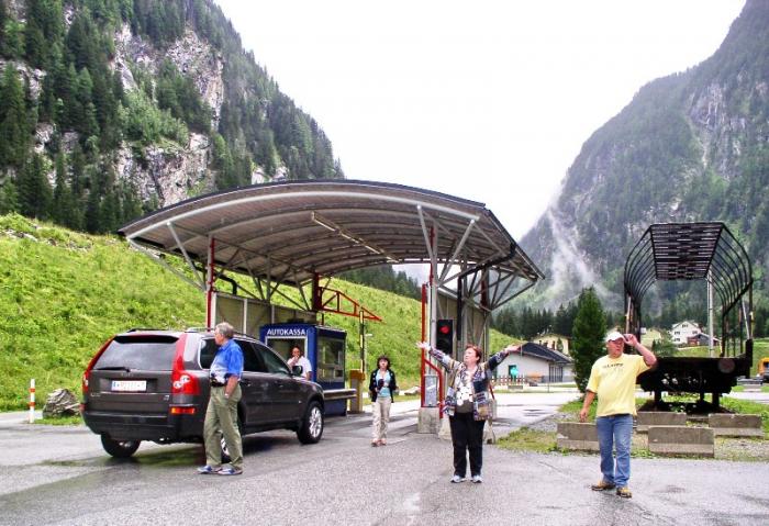 Позже оказалось, что не менее яркие впечатления ждали нас ещё впереди. Поскольку данный вояж был экспромтом, маршрут был нами до конца не изучен, но, как показывает практика, неожиданности поездку только украшают. Итак, мы, не спеша, двигались по живописной трассе, нас окружали Альпы, утопающие в зелёных лесах, за вершины деревьев которых «зацепились» облака и вдруг… — голос из навигатора: «А теперь возьмите паром». Оглянувшись вокруг, не увидев ничего, кроме гор, вершины которых устремлялись ввысь и исчезали в облаках, сделали естественное заключение, что обнаружить в этих местах хоть какой-нибудь водоём, по которому, нужно будет сейчас совершать переправу, было бы, по меньшей мере, смешно. Увидели будку с надписью «Autokassa» и одиноко стоящие две машины. Решив, что вряд ли у австрийцев «плохо с головой», приобрели билеты в одну сторону, неуверенно поинтересовавшись: «А когда переправа?» Услышали в ответ что-то вроде: «Через пол часа, как только прибудет паром» — вопросов только прибавилось. Через некоторое время у некоторой части мужского населения наших экипажей началась истерика в стиле: «Лёлик, останови, я выйду!» Женская часть экипажей твёрдо ответила: «Спокойно, Казладоев, сядем усе!» Двадцать минут прошли в нервном ожидании,…за нами уже выстроилась приличная очередь, а парома всё нет,…уже начались нервные шутки: «сейчас нам выдадут вёсла и поплывём»:))
