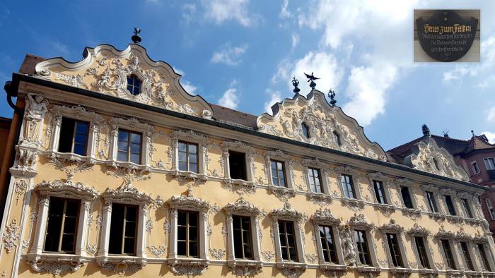 Рядом соседствуют пышные фасады в стиле Роккоко. Дом «У сокола» не только красиво восстановленное после бомбежки 1945 года здание, он еще служит информационной точкой для туристов, где можно приобрести бесплатно карту города и узнать про его достопримечательности.