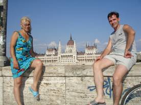 Но жара началась уже в одиннадцать часов утра. И мы опять въехали в самый центр города. Правда, страшно уже не было, мы люди привыкшие. Но по сторонам начались такие красоты, что трудно стало следить за дорогой. То замок, то площадь, то дворец! Огромный город немысленной красоты. Мы поняли, что влюбились с первого взгляда. На самом деле города оказалось два. Королевский Буда, возвышающийся на горе и увенчанный сверху средневековым замком. И Пешт – город на равнине, застроенный великолепными дворцами. Между ними, обвенчав их навсегда вечностью своих вод, неспешно течет задумчивый великий Дунай.