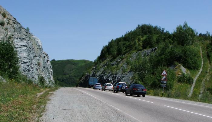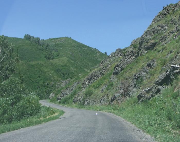 Плетемся, объезжая ямы и огромные кочкари, материмся. На обочине стоят машины с вывернутыми колесами. Потихоньку въезжаем в город. Тут нас ждало знакомство с сотрудниками местного ГИБДД (ЖоПо по ихнему). Остановили и не моргнув глазом сказали, что я не включил поворотник. Забирают права, пишут протокол, заплатишь говорят штраф, заберешь права. Такой расклад меня никак не устраивал, спорить бесполезно(начинают хамить, показывать кто в доме хозяин), предлагаю альтернативный вариант, это все меняет, отпускают с миром, подсказывают дорогу. Настроение подпорчено. На выезде из города пост ЖоПо, сотрудник провожает нас голодным взглядом, но почему то не останавливает. Дальше по трассе Семипалатинск-Усть-Каменногорск. Дорога очень хорошая. Едем 100-110( В Казахстане на трассах разрешено 110). И тут опять встреча с ЖоПо( правда сам виноват был). Есть там участок новенького асвальта, где «забыли убрать» знак ремонт дороги 40км/ч-20км. Едем около 70. Останавливают, опять забирают права, опять протокол, опять предлагаю альтернативу и едем дальше, настроение в конец испорчено. Добираемся до Усть-Каменногорска, отдохнули, поели и на финишную прямую(а вернее кривую).