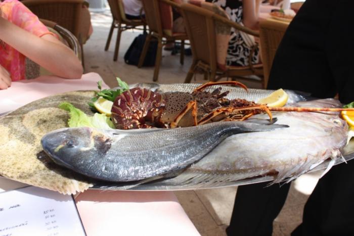 А так целый день оттягивались на пляже. У меня был небольшой казус – на обед мы взяли на 3х рыбную тарелку (220 кун = 2 рыбины, 2 рыбных стейка, кальмары гриль, овощи гриль, и много картошки со спаржей), салат, хлебные лепешки и 2 пива. Так вот я на пляж котился и еще 2 часа с трудом переворачивался со спины на живот с помощью Натали. Пользуясь случаем хочу сказать спасибо Натали, что не оставила меня один на один с этой бедой :) А Леша, кстати, в последний раз насладился «маааааленькими креветками».