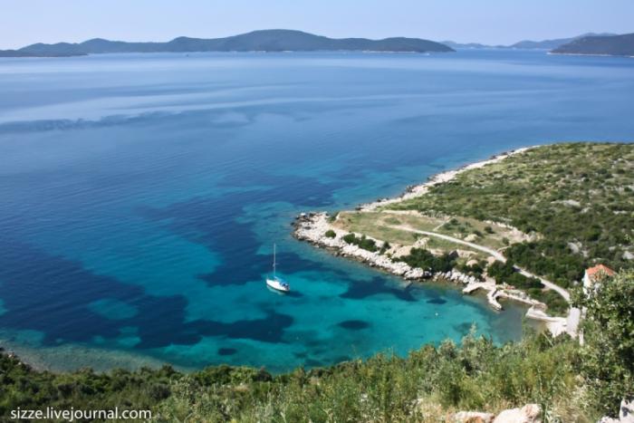 Уже в Дубровницкой-Неретванской жупании (область где Дубровник) мы с дороги присмотрели очень красивую лагу с яхтой и катамараном, куда реши спуститься, чтоб покупаться и позагорать. Только-только переоделись и залезли в воду как подъехала машина, от туда вылез пожилой мужичек и начал что-то кричать на хорватском и отчаянно жестикулировать. Я подошел и на английском спросил в чем проблема, и он на хорватском-русском-английском-немецком объяснил, что это его частная собственность и мы тут не имеем право оставаться. Вопрос решился только после того как я дал ему 20 кун, после чего он сделал попытку стать моим лучшим другом — рассказал что у него есть гостиница и ресторан, и что он нас с удовольствием там примет…