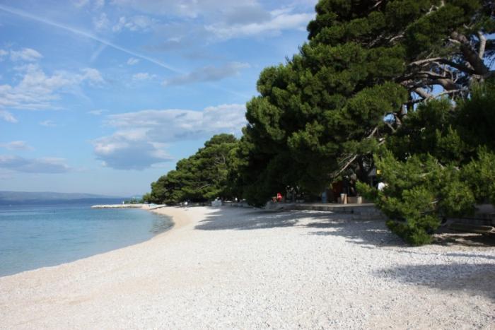Брела. Со второго захода нашли улочку и дом в котором на предстоит прожить 8 дней. Первое впечатление и о апартаментах и о хозяевах — супер позитивное, апартаменты соответствуют описаниям, хозяева — добрые и радушные. Единственная заминка была с погодой, за 2 дня до нашего проезда тут прошел ураган и температура опустилась до 20-22ºС, тучи. Мы не отчаивались и решили, что это благоприятная погода для изучения местности. Распаковав вещи и перекусив на скорую руку мы отправились на поиски пляжа Пунта Рата и «визитной карточки» Хорватии — маленький островок с соснами.
