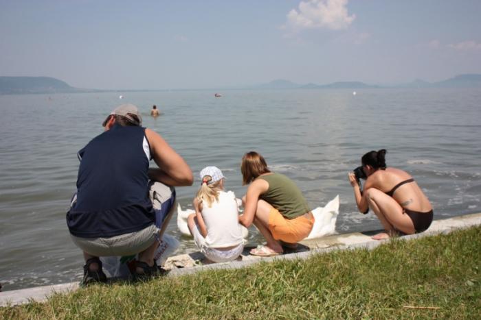 Каждый из нас слышал большое количество положительных отзывов об озере Балатон и поскольку наш сегодняшний маршрут был вдоль этого известного озера, не заехать, мы не могли. Границу Хорватия-Венгрия прошли довольно быстро, но венгерские таможенница успела нам нахамить – хотела чтоб мы побыстрее уехали, после того как она отдала нам паспорта, но не тут то было – необходимо обязательно проверить наличие штампа о въезде в Шенгенскую зону, чтоб потом не было проблем с выездом. Забыл написать, когда мы въезжали в Хорватию со Словении, словенские таможенники не поставили штамп в один из паспортов, тогда это мы заметили случайно… Балатон. Мы о нем много слышали, но когда начали выбирать куда можно заехать, то никто толком ничего не знал, поэтому слепой жребий пал на городок Балатонфенивес (если не ошибаюсь – третий от Хорватии). Были в нашем экипаже желания искать бесплатный пляж, но это пресек быстро – лучше время поиска потратить на пляже чем на поиски в душной машине, да и еще и потом остановиться на платном пляже. Стоимость входа уже не помню, но примерно по 2 евро за человека на день и в нашем расположении – зеленый газон, туалет, душ, детская игровая площадка, кафе, ну и сам пляж.