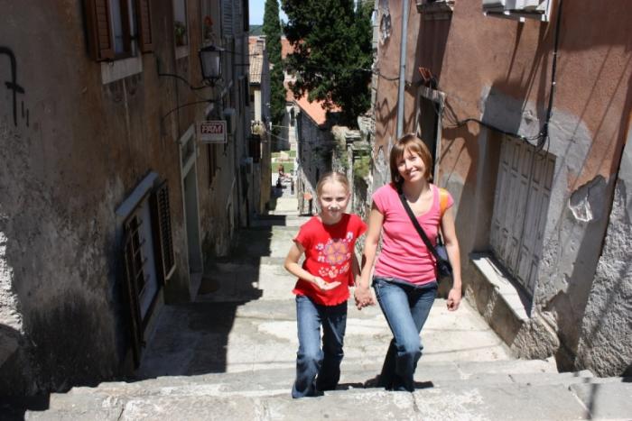 С самого утра пошли с Натали на утренний заплыв до завтрака, плюс фотосессия, плюс необходимо набрать чистой адриатической воды для того чтобы полоскать зимой нос Анжелики (эта вода была потеряна сразу же по возвращению домой).