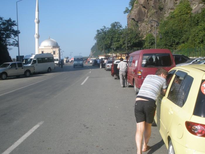Границу грузинскую проехали быстро, проверок никаких.Поменяли на ней 500 евро на турецкие лиры. А вот на турецой стороне нужно было зайти в небольшое здание, где нам поставили штампики в паспорта и сделали страховку greencardза 30 долларов и спросили: водка? На что мы ответили: ноу водка.