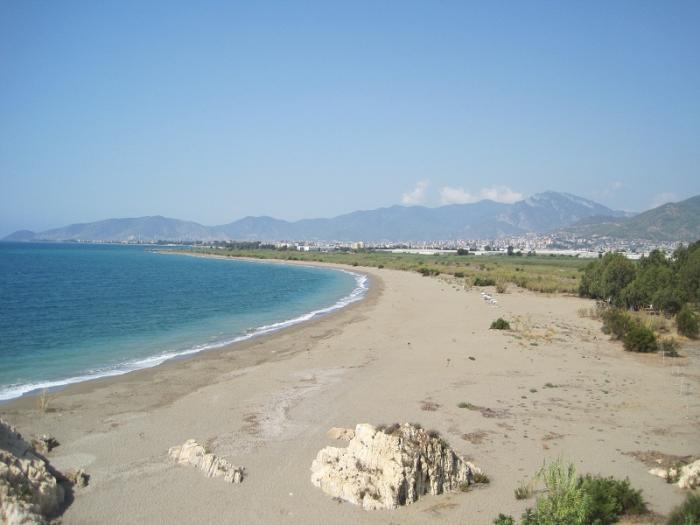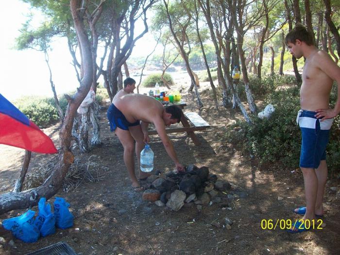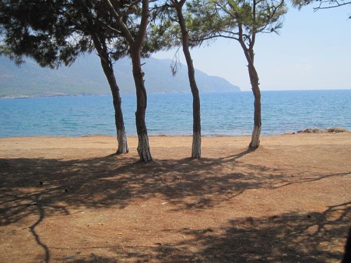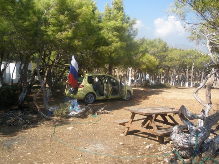 Сразу за городом нашли кемпинг, договорились за 100 tl(1800 руб.)на два дня, остановились в нем. На Средиземном море уже было очень жарко и вода очень теплой.