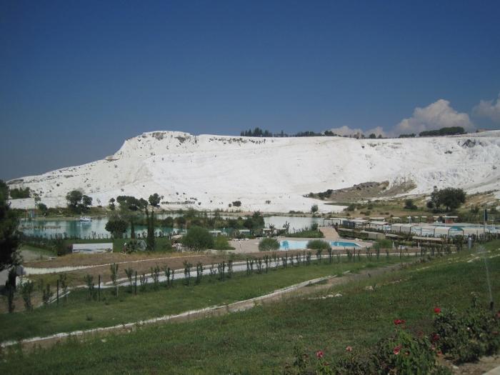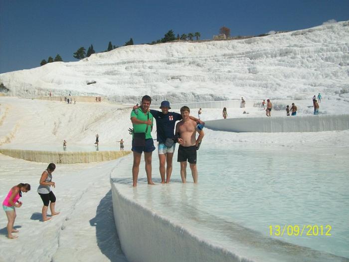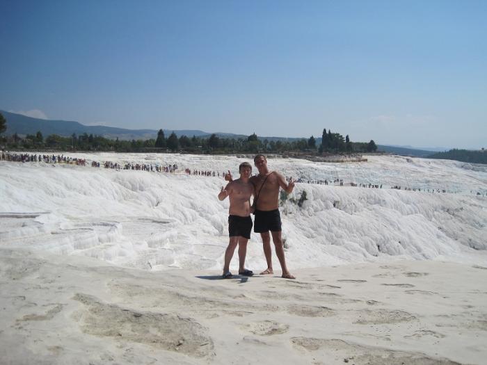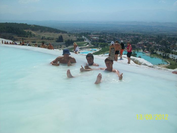 Рано утром выпив кофе выехали в сторону Памуккале, место, где очень красивые термальные источники.