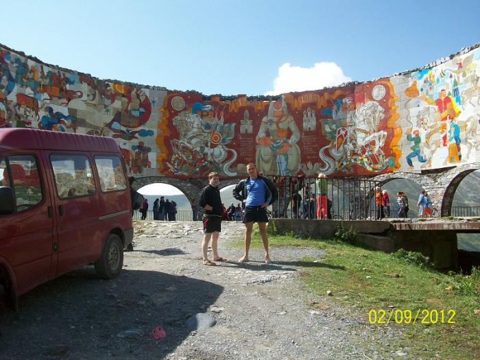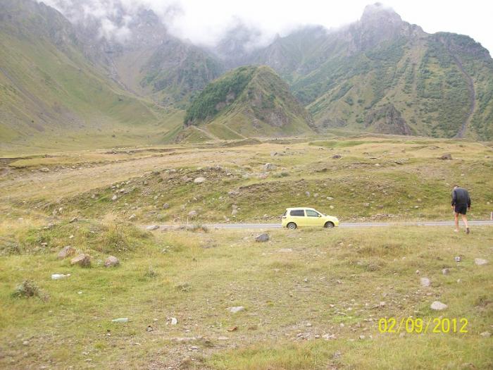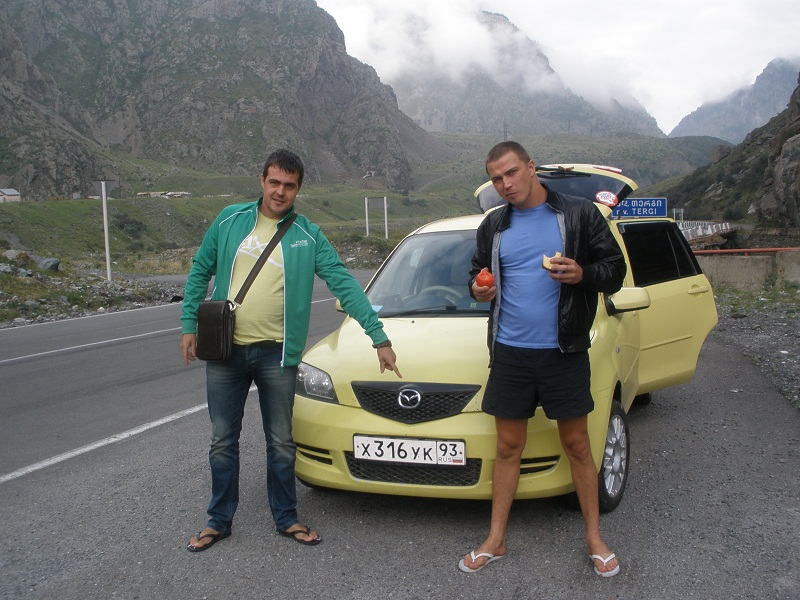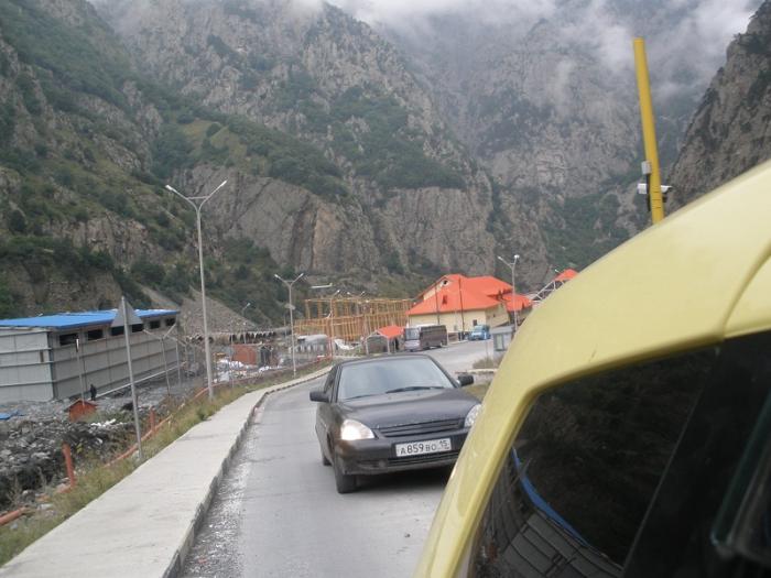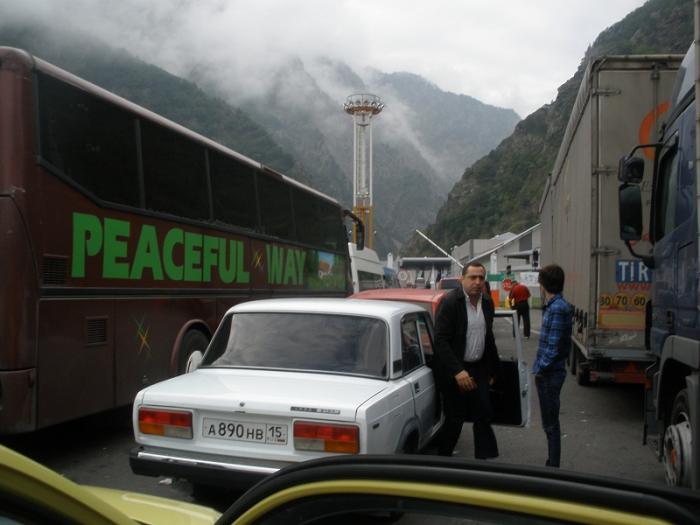 Не спеша за ночь нам нужно было доехать до границы с Россией. Не зная дороги ночью ехать трудно, да и еще грузины летают как сумасшедшие. Перед тем как обогнать, включают не поворот, а дальний свет и начинают обгонять. Единственное, что успокаивало, это то, что очень много полицейских машин патрулируют все трассы. На подъеме на гору ближе к военной дороге заправились на оставшиеся 30 Лари. На заправке спросили у двух грузин в возрасте, работает ли граница ночью, на что один из них сказал- ДА, а другой- НЕТ :). На военной дороге ночью машин и полицейских практически нет. Даже как- то страшновато ехать, очень темно и ни одного фонаря. К 4 утра подъехали к границе, уже стояла очередь машин 30. Оказывается граница работает с 6 утра. 2 часа отдохнув от дороги, прошли границу где- то за 1 час и вот мы в России.