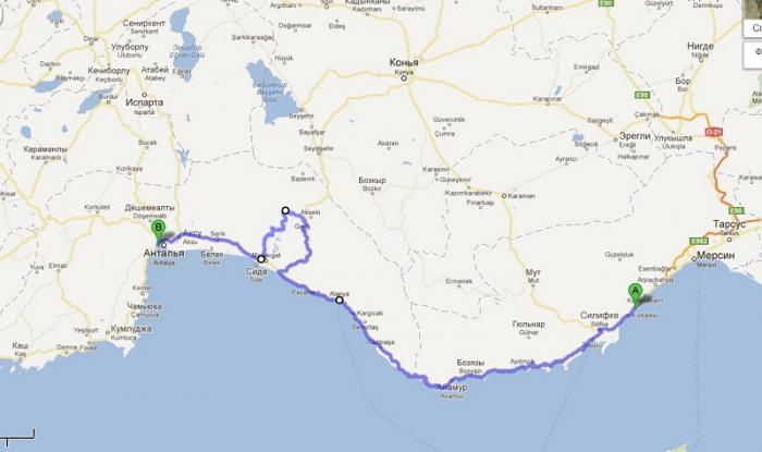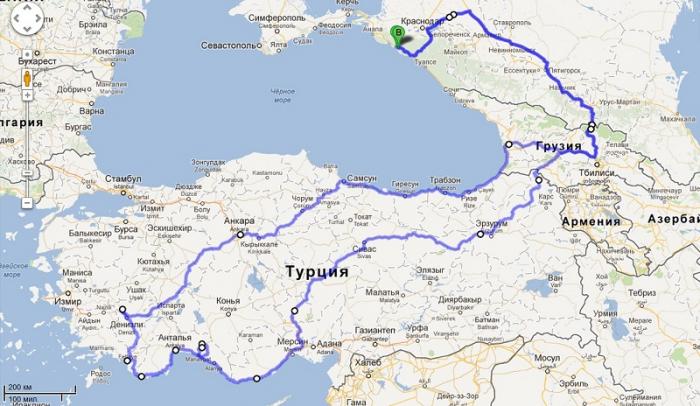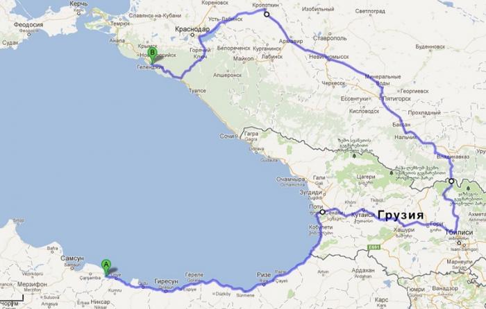 Маршрут был такой: Геленджик – Пятигорск – Владикавказ – Верхний Ларс – Боржоми – Вале – Пософ – Эрзурум – Сивас – Мерсин – Анталья – Фетхе – Дезинли – Анкара – Самсун – Батуми – Владикавказ – Геленджик.