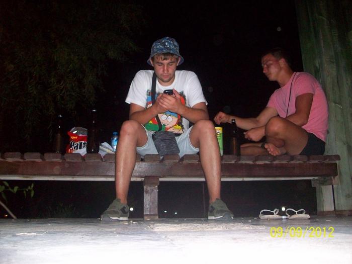 Вот он со своим другом, любитель на халяву выпить :).