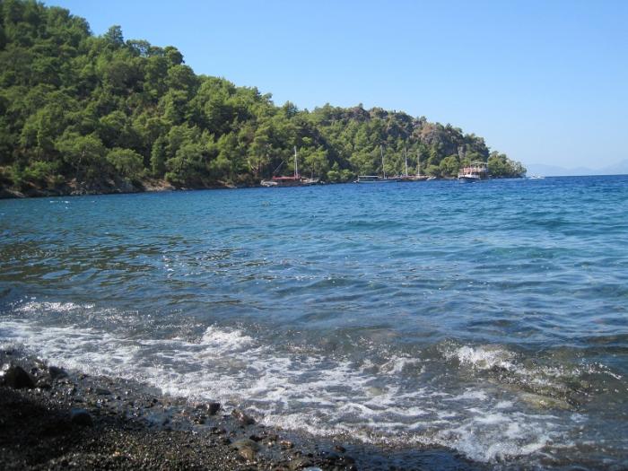 Вода очень чистая. В эти бухты заплывают яхты с туристами.