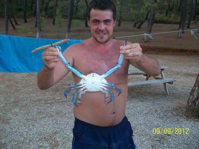 Такого вот краба поймали на удочку на кусочек курицы, есть не стали, вдруг несъедобный.
