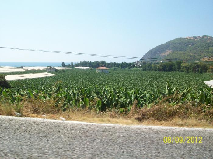 Дорога была чем- то похоже на Туапсе – Сочи, такие же перевалы и повороты, только намного лучше. Банановые теплицы и небольшие городки, в которых росли одни бананы, а вот цена на них около дороги была немалая — 3-4 tl (рублей 70).
