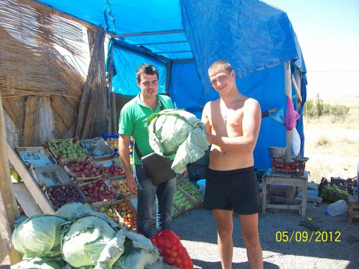 На выезде из города остановились перекусить. Съели по две порции и за все отдали 115 TL (2070 руб.), такие вот у них цены, а может нас и обманули, т.к. общались с ними на пальцах.